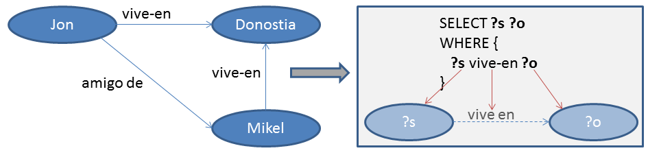 Entidades: las entidades del dominio de conocimiento, identificadas con URIs, introducidas por el desarrollador ("Mikel", "participa_en", ...)