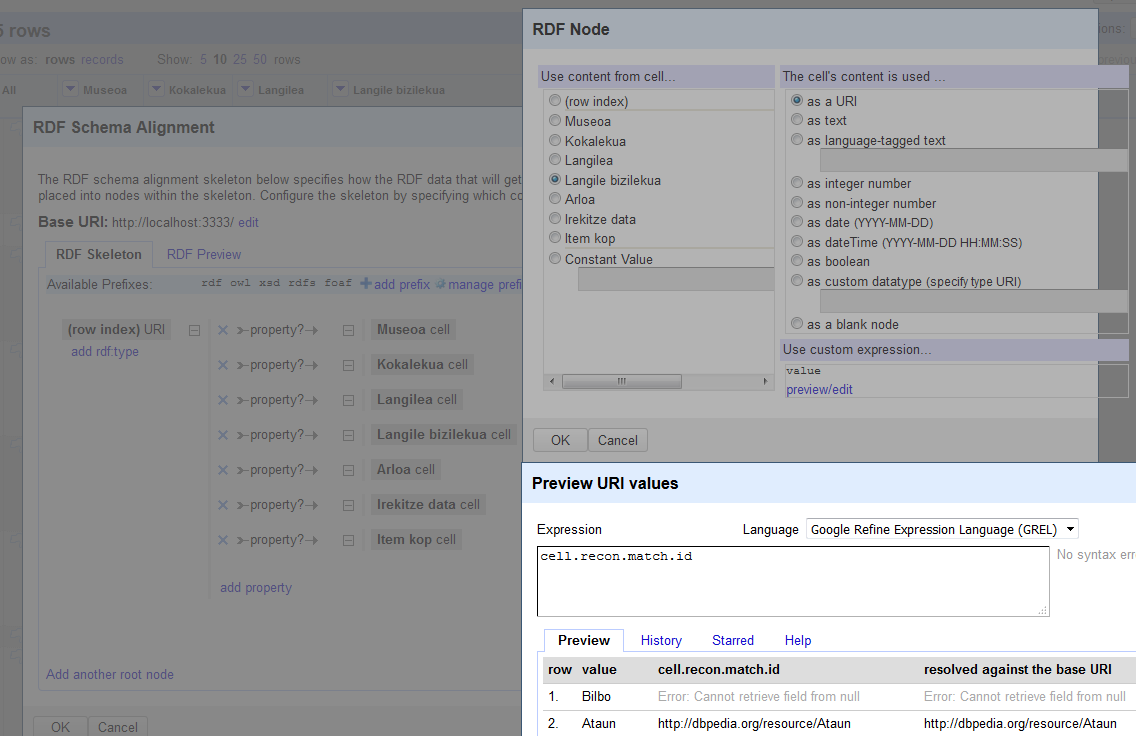 Ejecutar blazegraph, subir Museoak.rdf y bilbo_dbpedia.ttl