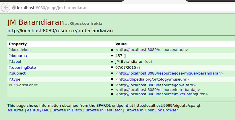 $ curl -L "http://localhost:8080/resource/jm-barandiaran" $ curl -L -H "Accept: application/rdf+xml" http://localhost:8080/resource/jm-barandiaran